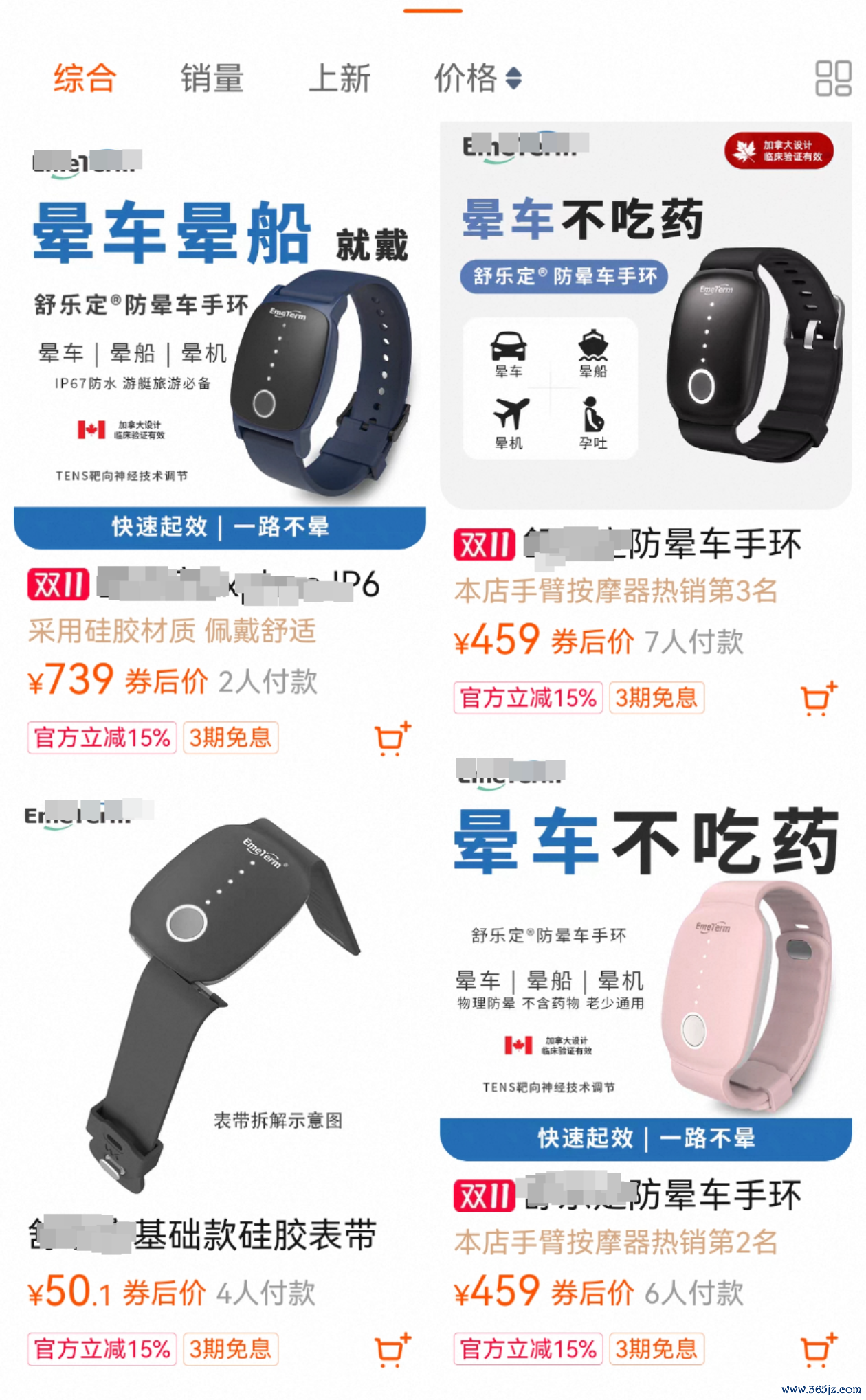 通过查询,记者发现,该手环在一家名为“舒乐定官方企业店”的网店有售卖,有介绍内容为“来自加拿大的防晕车手环,专注靶向神经调节技术”,目前共有四个不同款式的手环产品售卖。