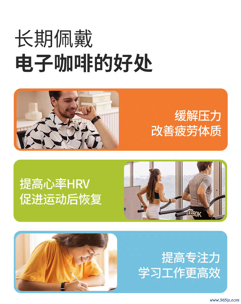 该产品官方介绍显示,这款售价为679元的电子咖啡手环,其核心功能是模拟咖啡因对神经系统的调节作用,但摒弃了化学物质摄入。它旨在通过非侵入性方式调节人体的交感神经(负责兴奋)与副交感神经(负责放松)的平衡,从而在不摄入咖啡因的情况下,达到提神、专注的效果,尤其适用于疲劳驾驶、高强度工作和运动后恢复等场景。